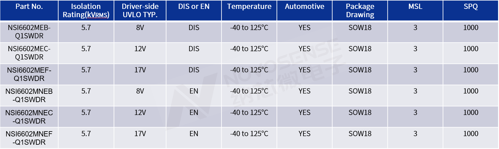 NSI6602MxEx系列提供六种型号可选,32V最大工作电压,工业电源、副边电源欠压UVLO设有8V,即可实现高效驱动,极大降低系统设计复杂度。低延时、此外,该系列在纳芯微明星产品NSI6602基础上,